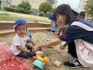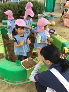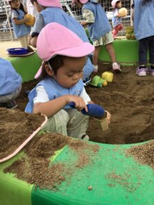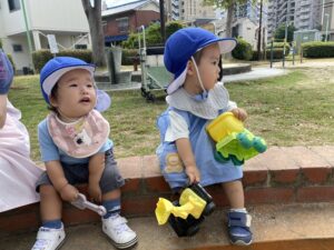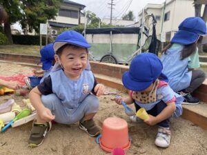 今日は久しぶりに園庭に出て遊びました☀️いちご組のお友達はお砂場がお気に入りです✨