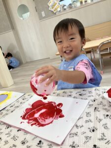 スタンプを押した後に厚紙を剥がしてみると、ハートや星やクマの形が上手にみんな浮かび上がっていて、とっても嬉しそうにしていました♡