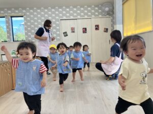 0、1歳児さんはお部屋でよーいどんをしました✨