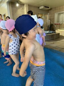プールサイドを持って上手にカニさん歩きで戻ります😊