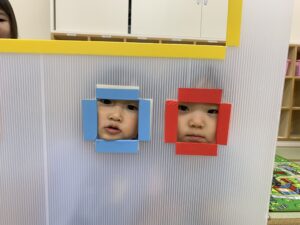 ブロックコーナーでは、先生と一緒にがっちゃん♪がっちゃん♪とブロックを組み合わせて楽しんでいました💕