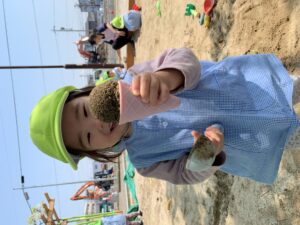 2歳児さんと、大きい1歳児さんで元八事公園のお砂場で遊びました。
