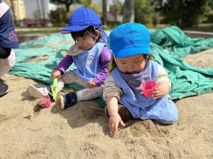 0歳児さんは夢中で容器に落ち葉を入れていましたよ🍂