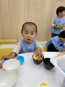 育休中の先生が、赤ちゃんを連れて遊びにきてくれました。