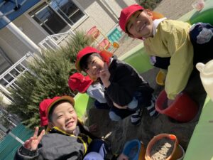 最近歩けるようになったもも組さんもお砂場で、お砂のジャリジャリとした感覚を足で踏んでみたり、手で触って楽しんでいました😄
