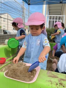 今日は久しぶりに園庭に出て遊びました☀️いちご組のお友達はお砂場がお気に入りです✨