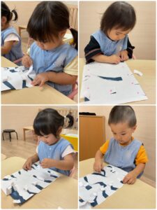 ビリビリ〜紙を引っ張って破っていきます🤭何に変身するかはまたのお楽しみで🤫