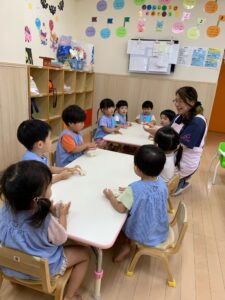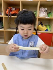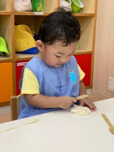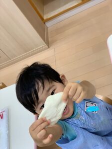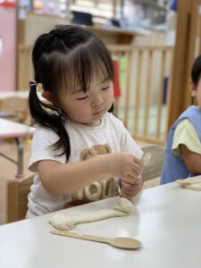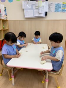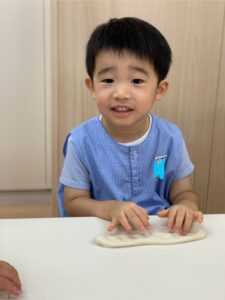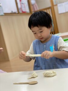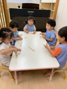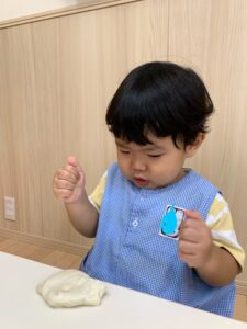 お散歩の後、1歳児さんも少しだけ粘土しました😊