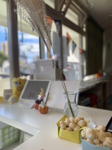 最後はみんなで協力してコロコロ丸めてお月見団子を作りました💕