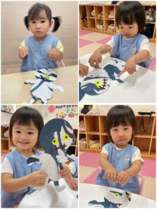先日、画用紙に貼ってある紙をビリビリしして作った10月の製作が完成しました❣️