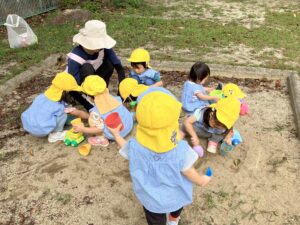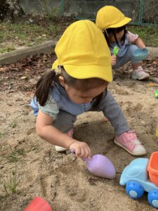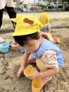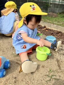 とっても集中してバケツの中に砂を入れるお友達の姿も👀久しぶりの砂遊びをとっても楽しんでいました!