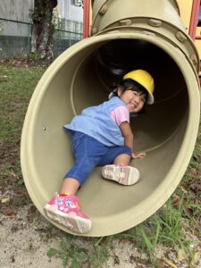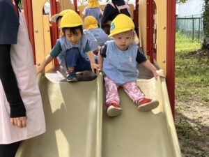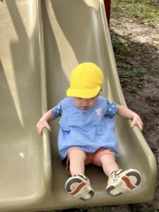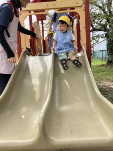 久しぶりの滑り台に夢中で、何度もシューっと滑って楽しんでいました✨