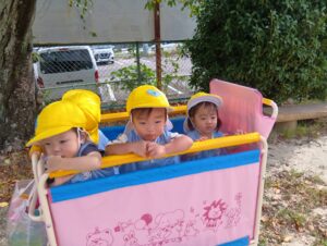 1歳児さんも少しずつ体力がついてきてマミーベアまで先生と手を繋ぎ歩いて帰ることができるお友達も👏🏻0歳児さんや1歳児さんも久しぶりのカートでしたが、みんなとっても上手に乗れました🌟
