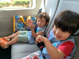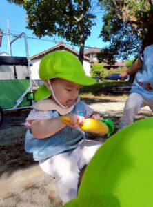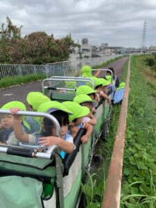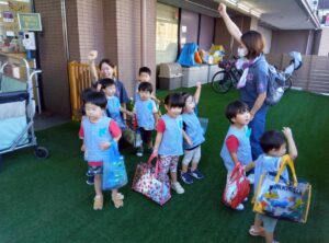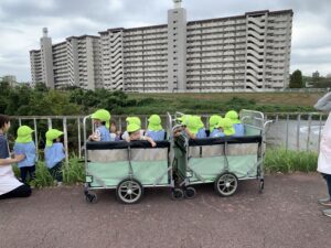 🍠0・1歳児さんは、手繋ぎとカートで出発です。