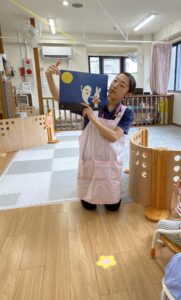 お月様が出てくると「おつきさま!」「まんまるだね〜」と興味津々の子どもたち👀
