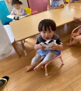 「パンダだよ!」「何が入ってるの?」と袋越しで触って嬉しそうでした💕