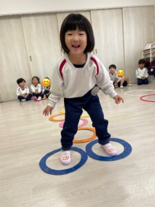 “とんぼのめがね”や“大きな栗の木の下で”など歌に合わせてリングを上手に跳んでいましたよ!