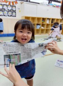 新聞ベッドに寝転んで降ってくる新聞に大喜び🤭