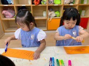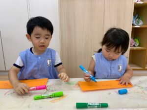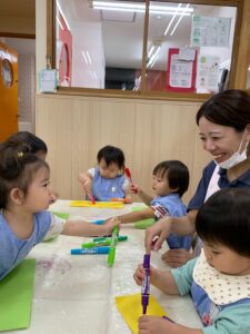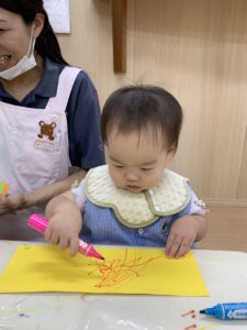 2歳児さんも、好きな色の画用紙やペンを選んでとっても楽しそうにお絵描きしました😊💕