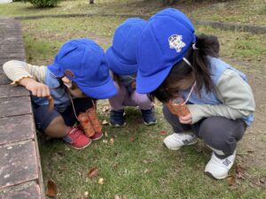 最近、朝の会や帰りの会で「きのこ」を歌っているので、きのこを見つけると嬉しそうにみんなで歌って踊っていました🍄🍄