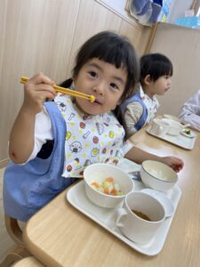 2歳児さんはお箸を使えることが嬉しくて、苦手なものも自分から食べようとする姿も…✨