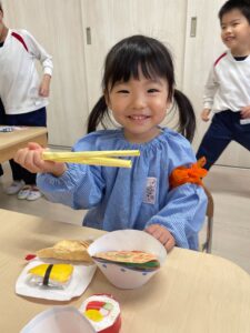 お箸で上手に食べれるかな?