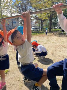 鉄棒では、「こんな技できるよ〜!」と見せてくれました♪