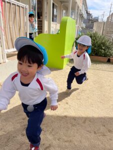 「鬼ごっこやりたい子〜🙋♀️」とお友達と鬼ごっこを楽しんでいます!