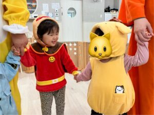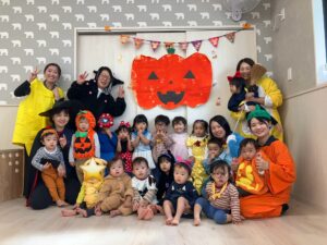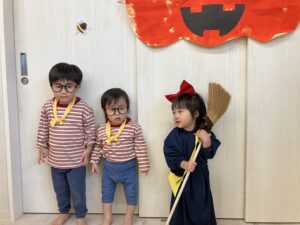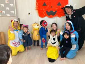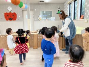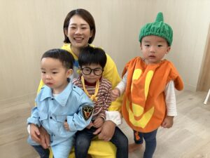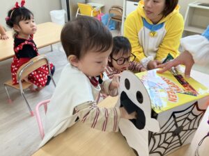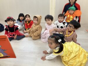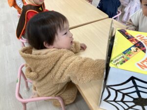 最初にクンタ先生にハロウィンの絵本を読んでもらいました📕みんなとっても真剣な顔でお話を聞いていました♪