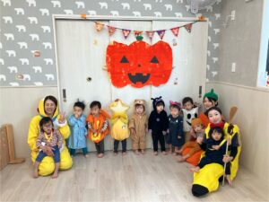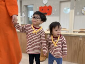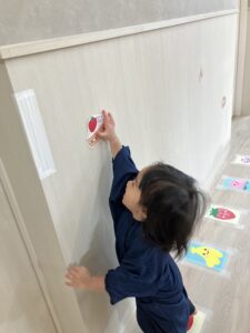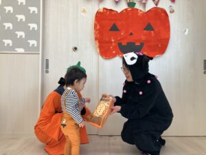 ハロウィンパーティー1日目はお部屋でお菓子探しをしました🍬お部屋の中に貼ってあるお菓子を探しにいき、お菓子を見つけると「あったー!」と嬉しそうにお菓子をとっていました☺️