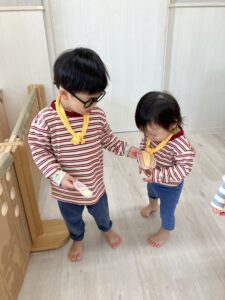 その後はバルーンの歌を歌いました🎈最後はグッバイの歌をお友達と手を繋いで歌いました🤝🏻