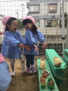 HOME > マミーベア ブログ うえだきた 2025.10.31 今週の様子(うえだきた) 最近のりんご組さんの様子です🍎 今日は園庭で遊びました☁️ 準備体操もバッチリ👌🏻 頑張ってアキレス腱伸ばしています😂 こちらはレストランを開いてくれました! \みてみてー!ジャーン✨/とたくさんのご飯が並んでいます🍚 ボール遊びではフープの中に入るかチャレンジ💪🏻 上手に入れる事ができました👏🏻 また今週はハロウィンという事でハロウィンゲームをぶどう組さんとやりました🍇 蜘蛛の巣を抜けて魔女の所へ行きます🧙♀️ 次は的当てゲームと宝探しゲーム🌟 どこにあるか真剣に探しています🤭 また遊ぼうね🧡 最近の投稿 いもほり(やごとひがし•うえだ) ハロウィンパーティー🎃✨(あさだ) 今週の様子(うえだきた) 今日の様子(うえだきた) 最近の様子(うえだきた) お芋掘りに行きました✨(あさだ) 今日の様子(やごとひがし) ハロウィンパーティー!🎃第一回(あかいけにし) 最近の様子(うえだきた) ハロウィンパーティー第二弾🎃(うえだ) 月別の投稿 月を選択 2025年10月 2025年9月 2025年8月 2025年7月 2025年6月 2025年5月 2025年4月 2025年3月 2025年2月 2025年1月 2024年12月 2024年11月 2024年10月 2024年9月 2024年8月 2024年7月 2024年6月 2024年5月 2024年4月 2024年3月 2024年2月 2024年1月 2023年12月 2023年11月 2023年10月 2023年9月 2023年8月 2023年7月 2023年6月 2023年5月 2023年4月 2023年3月 2023年2月 2023年1月 2022年12月 2022年11月 2022年10月 2022年9月 2022年8月 2022年7月 2022年6月 2022年5月 2022年4月 2022年3月 2022年1月 2021年12月 2021年11月 2021年10月 2021年9月 2021年8月 2021年7月 2021年6月 2021年5月 2021年4月 2021年3月 2021年2月 2021年1月 2020年12月 2020年11月 2020年10月 2020年9月 2020年8月 2020年7月 2020年6月 2020年5月 2020年4月