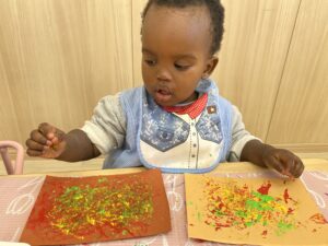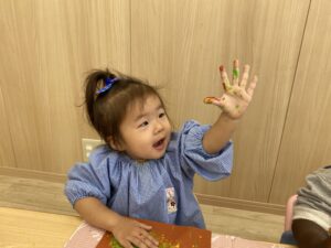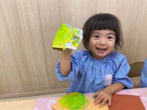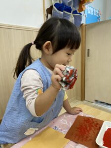 終わった後水で洗うと色水に変化するので「いちごジュースだ!」「メロンジュースみたい!」と嬉しそうにしています🤭