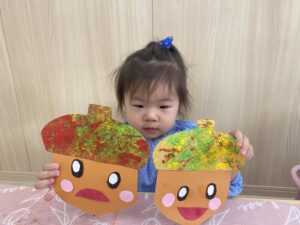 1歳児さんはお顔のパーツを貼って、2歳児さんは自分でお顔を描きましたよ😊✨