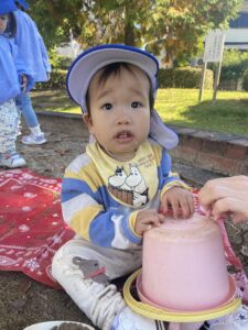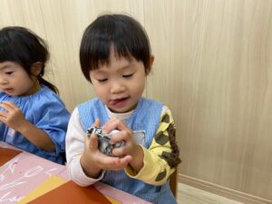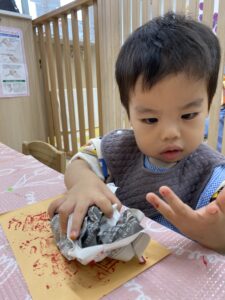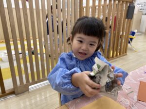 「おにぎりみた〜い!🍙」「まんまるお月様だよ」とお話ししながら楽しんでいましたよ😊