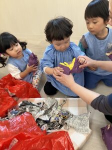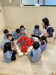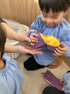 2歳児さんが作った焼き芋を使って焼き芋ごっこをしました🍠