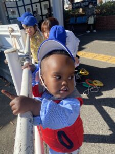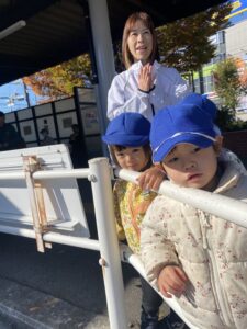 運転手さんが手を振ってくれると「あ!!」と嬉しそうな1歳児さん☺️