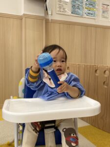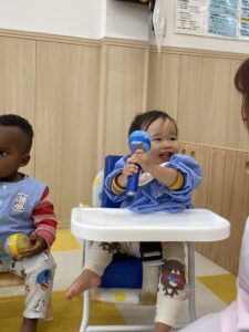 2歳児さんたちの大好きな歌が流れるとマイクを持って大熱唱❣️