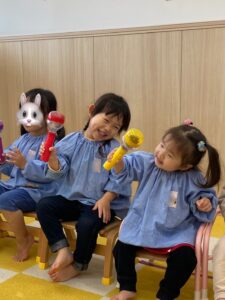 はじめはみんなでマラカスマイクを持って演奏をしました