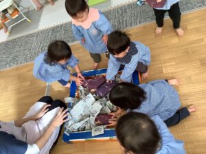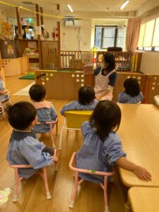 芋掘りのお話を見てから、みんなで電車に変身してお芋畑まで行きましたよ🚃