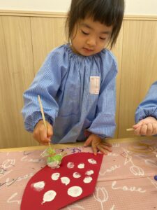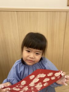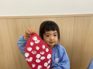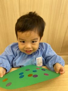 2歳児さんたちはタンポでスタンプをしましたよ😊