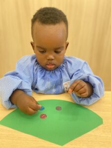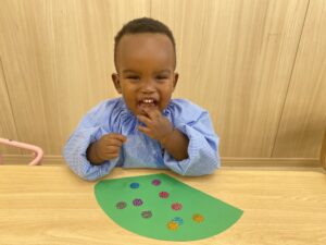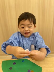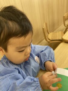 1歳児さんたちはキラキラのシールを貼りましたよ🤩