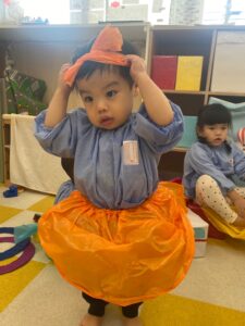 今度は完成した帽子をかぶってみんなで歌を歌おうね🎤