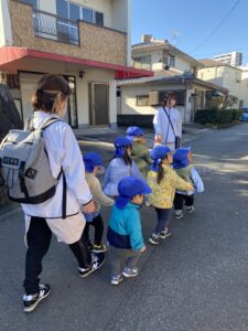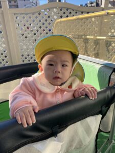 はじめてのお散歩にドキドキの0歳児さん。