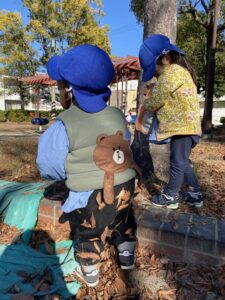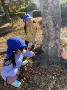 お砂場の近くにある木が気になる2歳児さん🌲