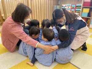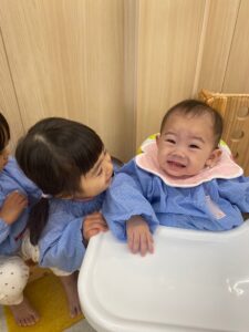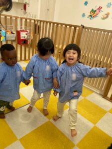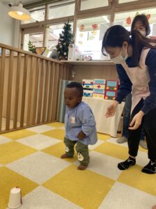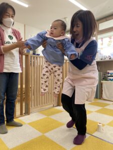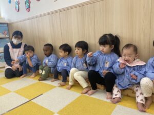 昨日から仲間入りした0歳児さんも、初めてのえいご活動に一緒に参加しましたよ💕
