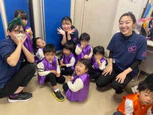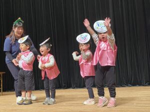 初めての場所、たくさんのお客さんを前に、立派にステージに立つことができた2歳児さん達✨