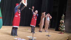 サンタやトナカイ、ツリーに変身した先生達が登場です✨