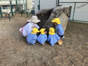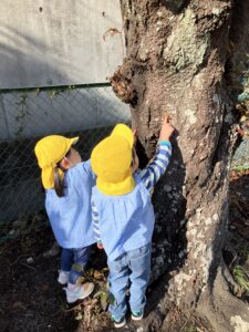 木に何かついてるのを見つけると「なにかな?」「たまごかな?」と真剣に観察をしていました📝
