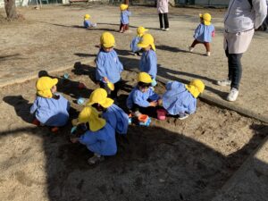 公園では砂場が大人気で、砂場ではケーキやご飯を作っていたり、ダンプカーや車のおもちゃに砂を入れて運ぶ事を楽しんでいます😊